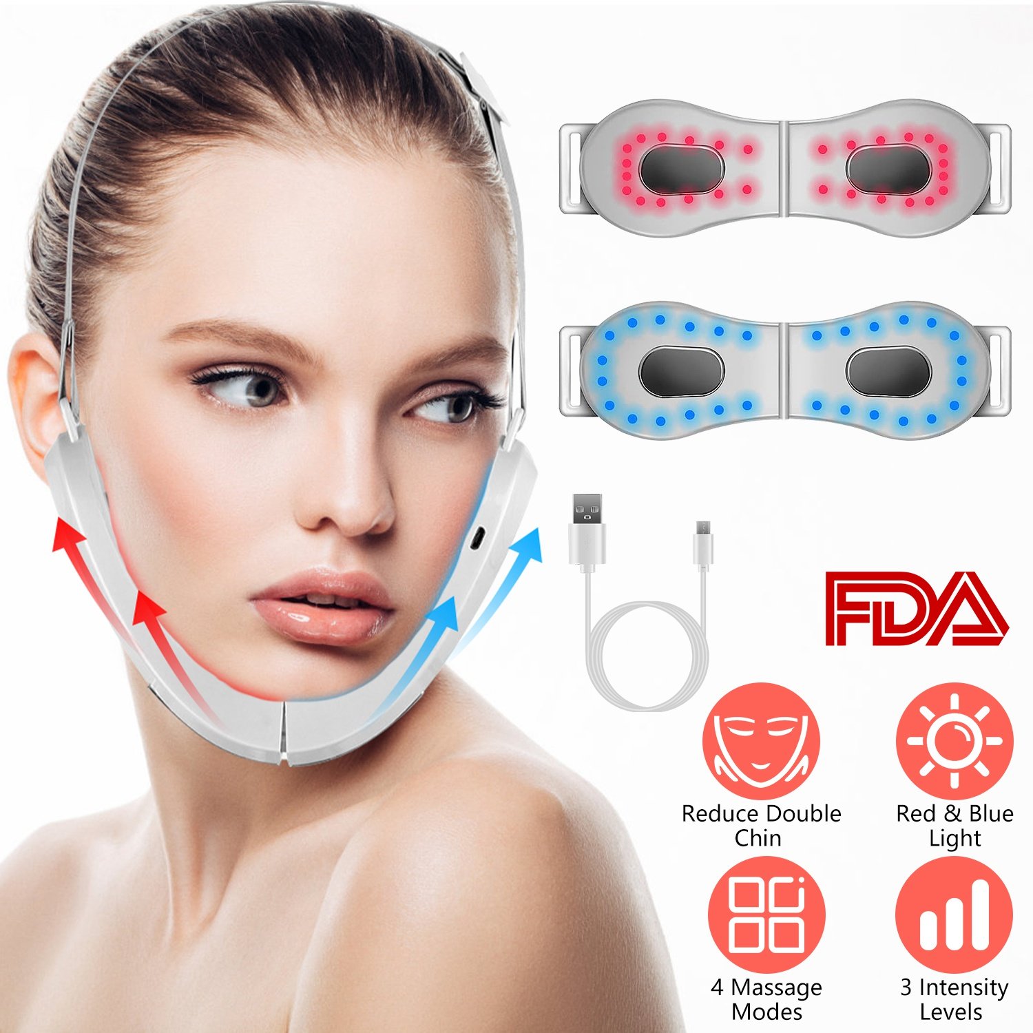 Home > Double Chin Reducer Machine Electric Face Lift Device V Face Shaping Massager with Red Blue Light 4 Mode 3 Intensity Level Adjustable Belt
