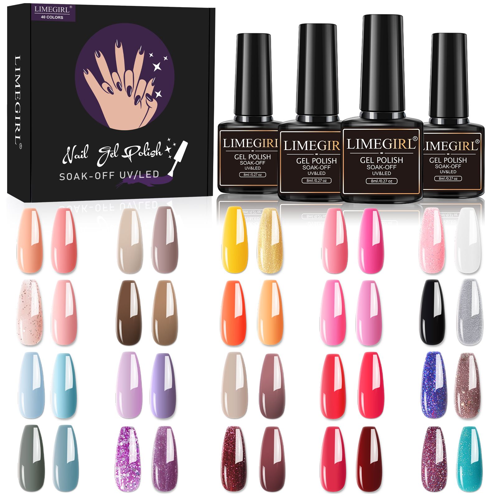 Home > Limegirl Gel Nail Polish Kit Pink Glitter Pop Summer 40/24 Colors Semi-Permanent UV Led Gel Varnish Soak Nails