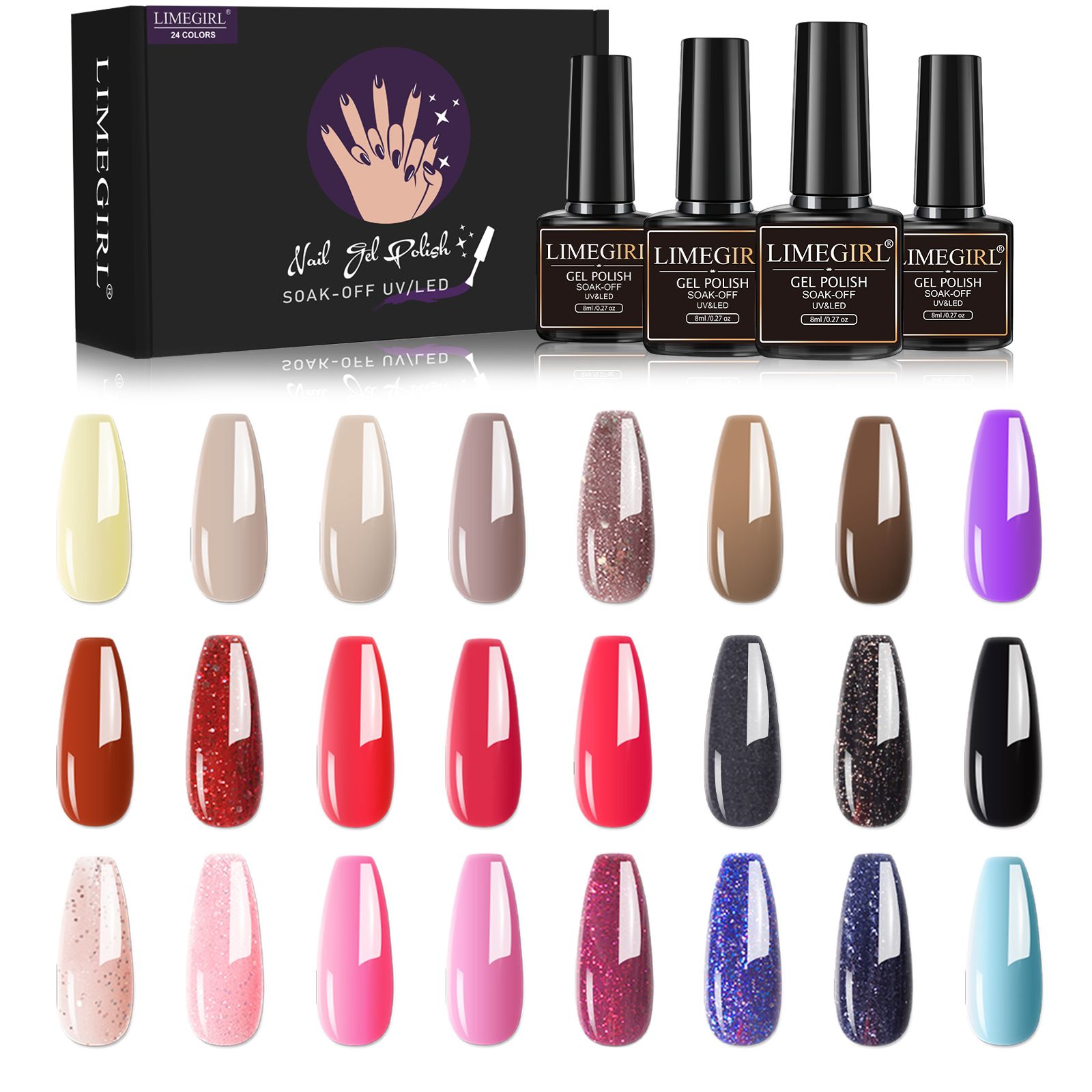 Home > Limegirl Gel Nail Polish Kit Pink Glitter Pop Summer 40/24 Colors Semi-Permanent UV Led Gel Varnish Soak Nails