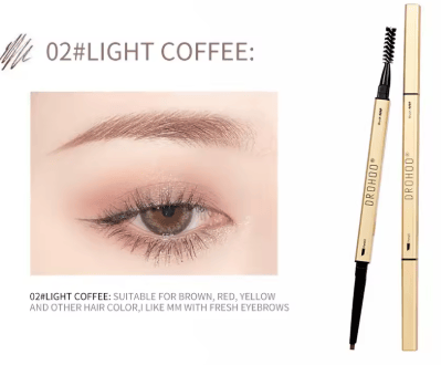 1. Eyebrow pencil, Eyebrow Makeup with Dual Ends,featuring a teardop tip,precisely outlines, easily shades,evenly fills in brows.Using the fine point of the triangle-tipped pencil, create hairlike strokes by applying light pressure and swiping in the direction that hair grows .