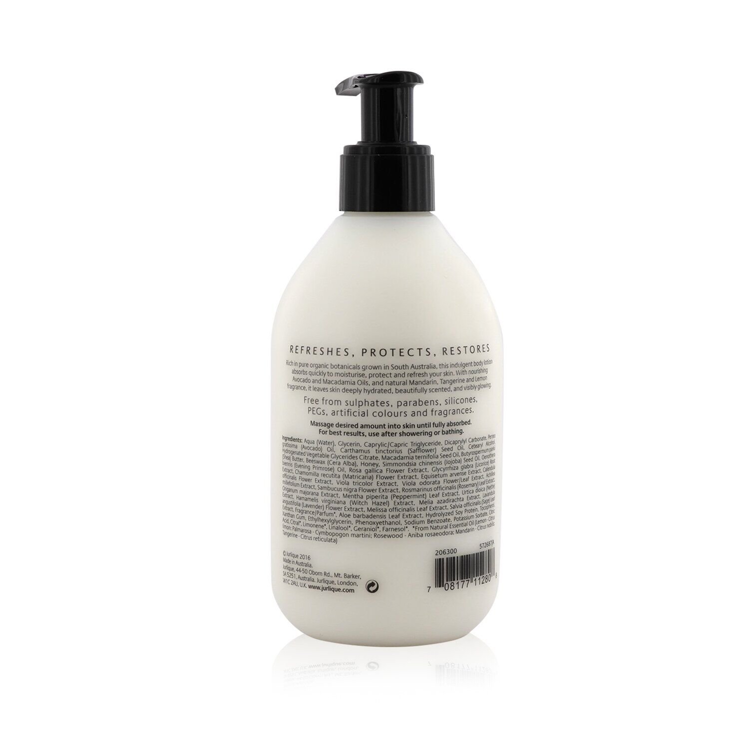 A fragrant refreshing body moisturizer Rich in pure organic botanicals grown in South Australia Dissolves quickly to moisturize & protect skin Formulated with Avocado & Macadamia Oils for nourishing benefits Infused with a natural Mandarin, Tangerine & Lemon fragrance Body skin appears softer, smoother & more radiant Free from soaps, sulphates, parabens, silicones, PEGs, artificial colors & fragrances